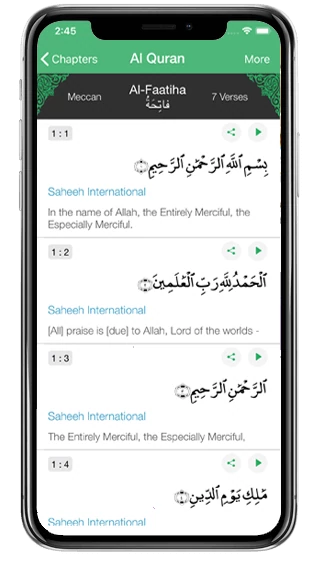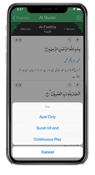 Different Quranic Scripts options; Simple, Indo-Pak and Uthmani.